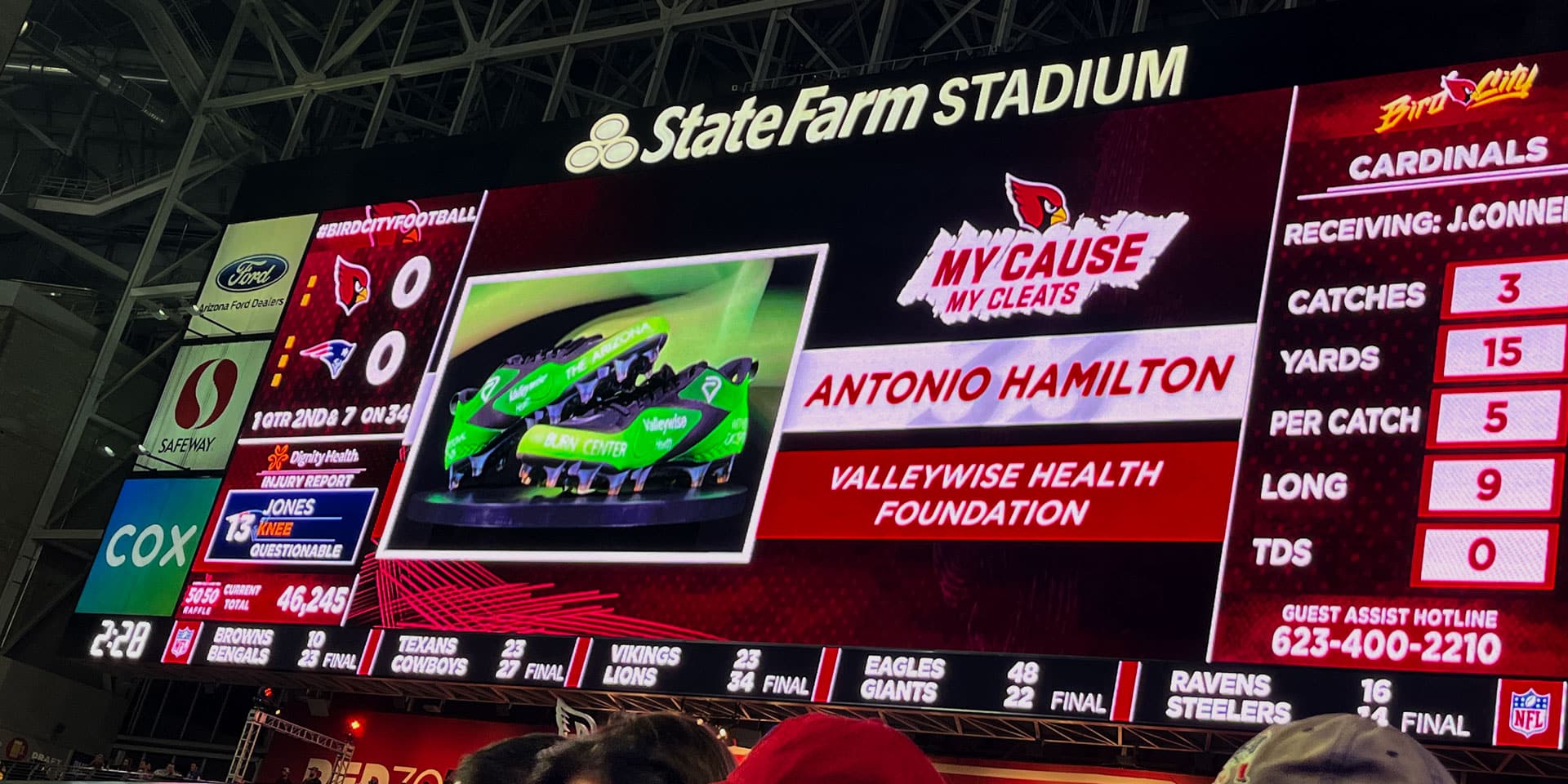 NFL’s My Cause My Cleats: A unique collaborative effort with individual players, the league, and charitable organizations. Our sister company (ReThinc Advertising) designed these cleats for our friends at Valleywise Health. They made an appearance on national television back in 2022.